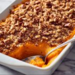 Paula Deen’s Sweet Potato Casserole is a comforting Southern classic featuring smooth mashed sweet potatoes enriched with warm spices and vanilla, topped with a buttery, crunchy pecan streusel. This delightful dish is baked to golden perfection, making it a perfect side for holiday feasts or cozy family dinners.