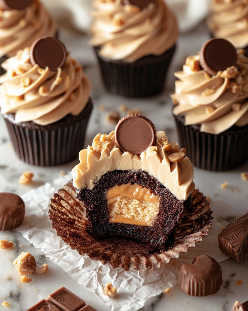 - Fill Cupcake Liners: Fill each cupcake liner halfway with batter. Place one peanut butter cup in the center of each filled liner, then cover with more batter until the liners are about 3/4 full, ensuring the peanut butter cup stays inside.