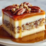 Pecan Pie Lasagna is a delicious no-bake layered dessert combining the richness of creamy cheesecake, the crunch of caramelized pecans, and the ease of no-bake lasagna noodles. It’s a delightful, indulgent treat perfect for any occasion that requires a show-stopping dessert with minimal effort.