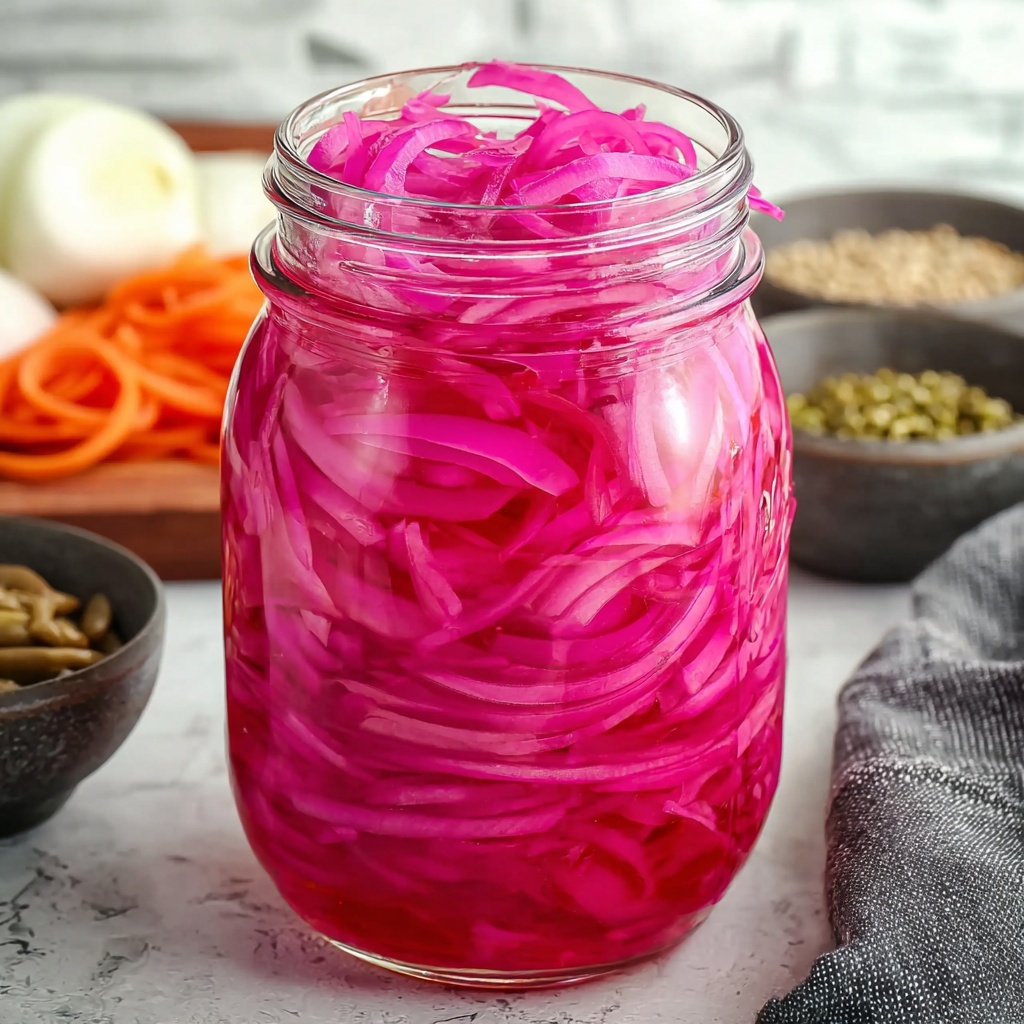This Pickled Red Onions Recipe shines because of its simplicity—just a handful of basic ingredients that come together to create something truly special. Each component plays a vital role: the tanginess from apple cider vinegar, the mild sweetness of sugar, the saltiness that enhances flavor, and the natural crunch of fresh red onion. Add some optional aromatics to personalize your pickles and watch your kitchen fill with incredible aromas.