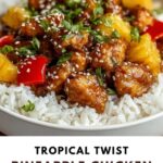 Fresh green onions, toasted sesame seeds, and a sprinkle of crushed red pepper bring brightness and contrast to the Pineapple Chicken and Rice Recipe. These simple garnishes elevate the dish visually and texturally, making each bite delightful and well-rounded.