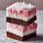 These Pink Coconut Snowball Cake Bars are a delightful blend of rich cocoa-flavored cake topped with fluffy vanilla whipped cream and vibrant pink coconut flakes. Perfectly moist and soft, these bars combine the subtle tartness of buttermilk with the sweetness of coconut, making them an irresistible treat for any occasion.