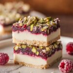 Try layering these bars in a glass jar with whipped cream and berries for a quick and stunning dessert parfait. Alternatively, stack them on a pretty plate with a few whole pistachios scattered around for a rustic, homemade vibe.