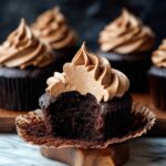 While your cupcakes cool, beat the softened butter until it’s fluffy and light. Gradually add powdered sugar and cocoa powder, alternating with milk to reach the perfect creamy consistency. Stir in vanilla and a pinch of salt for balanced flavor. If you need to adjust thickness, add more milk or powdered sugar.