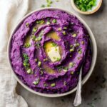 This quick and easy mashed purple sweet potatoes recipe offers a vibrant and flavorful side dish that combines creamy texture with warm spices and fresh herbs. Perfectly cooked and mashed, these purple ‘Stokes’ sweet potatoes are enhanced with cinnamon, nutmeg, garlic powder, and topped with fresh parsley and green onion for a colorful accompaniment to any meal.