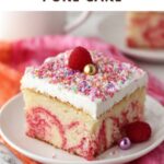 Serve the poke cake in individual glass jars layered with extra fresh raspberries for a charming twist. Alternatively, cut it into bite-sized squares and arrange on a platter with mint leaves scattered around for an elegant look. You can even experiment with layering it with other berries or mixing in some chopped nuts for a bit of texture.
