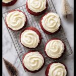 Sprinkle a few mini white chocolate chips, crushed red velvet cake crumbs, or even festive red and white sprinkles on top of the frosting. These simple garnishes add a fun texture and elevate the visual appeal just a little more.