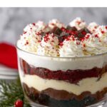 Extra shaved white chocolate and red sprinkles are my favorite toppings for this trifle, adding a bit of crunch and festive color. You can also scatter fresh raspberries or strawberries on top to introduce a fresh, fruity contrast that brightens every bite.