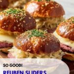 Delicious and easy-to-make Reuben Sliders perfect for parties, game day, or a tasty main course. These mini sandwiches feature layers of tender corned beef, tangy sauerkraut, melted Swiss cheese, and flavorful Thousand Island dressing, all baked to golden perfection on buttery poppy seed-topped slider buns.