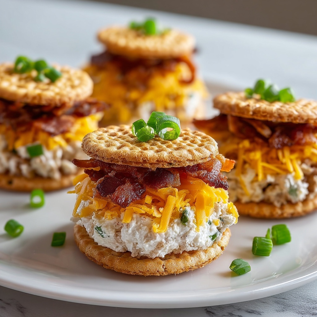 Ritz Cracker Party Sandwiches are a quick and easy appetizer perfect for any gathering. These bite-sized sandwiches feature a creamy cheese filling mixed with fresh veggies and optional bacon, all sandwiched between buttery Ritz crackers. They are a delicious, crowd-pleasing snack that requires no cooking and can be prepared in just minutes.
