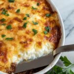 5. Serve: Remove the casserole from the oven and let it rest for 5 to 10 minutes to firm up for easier serving. Sprinkle freshly chopped parsley on top before serving for a fresh burst of color and flavor.