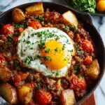 This Roasted Potato & Sausage Hash with Spicy Tomato Butter is a flavorful and hearty dish that combines crispy roasted potatoes with savory sausage and a spicy, buttery tomato sauce. Perfect for breakfast, brunch, or a comforting dinner, this recipe offers a delicious blend of textures and bold flavors, garnished with fresh herbs for a vibrant finish.