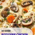 A comforting and hearty Rotisserie Chicken Mushroom Soup that combines tender shredded rotisserie chicken with fresh mushrooms, vegetables, and aromatic herbs in a savory chicken broth. Perfect for an easy weeknight meal packed with rich flavors and nutritious ingredients.