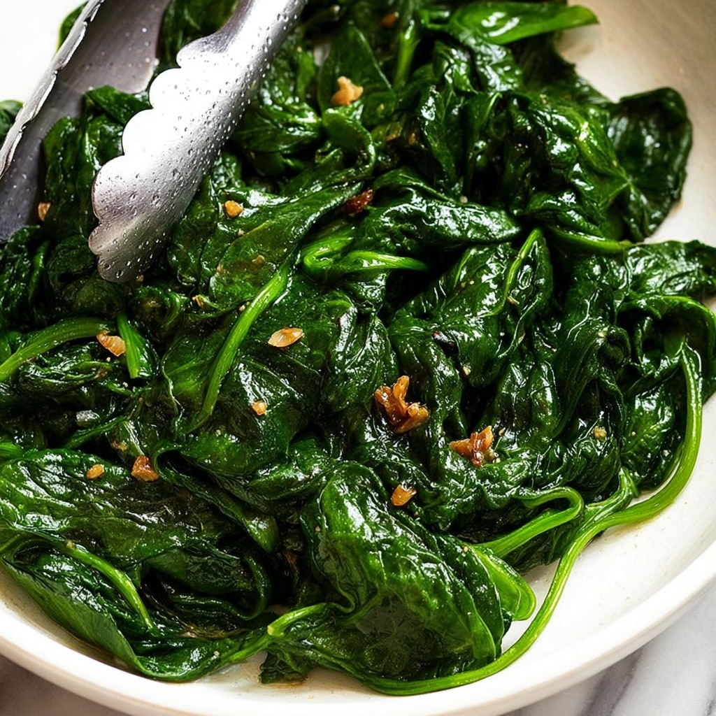 A quick and healthy sautéed garlic spinach recipe featuring fresh spinach leaves cooked with fragrant garlic and seasoned with olive oil, salt, and black pepper. This simple side dish is perfect for adding a burst of flavor and nutrition to any meal.