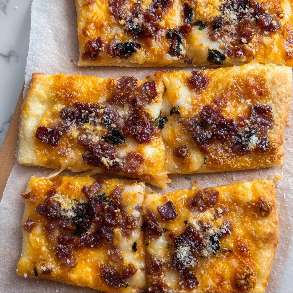 Slide the baking sheet into your preheated oven and bake for 20 to 25 minutes. You’ll know it’s done when the edges of the pastry turn a gorgeous golden-brown and crisp up beautifully. When you pull it out, sprinkle the pizza with a little Parmesan cheese for an added layer of savory depth. Let it cool slightly — this makes slicing easier and lets the flavors meld even more.
