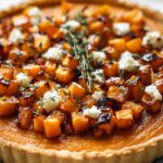 A delicious and savory butternut squash pie featuring caramelized onions, feta cheese, and fresh thyme in a flaky pie crust. This comforting dish balances sweetness from the squash and onions with tangy feta and a hint of balsamic vinegar, perfect as a hearty appetizer or main course for fall and winter meals.