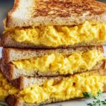 A delicious and comforting Scrambled Egg Grilled Cheese Sandwich combining fluffy scrambled eggs, melted cheese, and crispy buttered bread. Perfect for a quick breakfast or satisfying snack with a golden, crispy exterior and soft, cheesy interior.