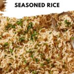 A flavorful seasoned rice recipe featuring aromatic sautéed onions and garlic, cooked with beef broth and enriched with butter and soy sauce for a savory, comforting side dish. Perfectly fluffy and infused with a blend of herbs and savory sauces, this rice pairs well with a variety of main courses.