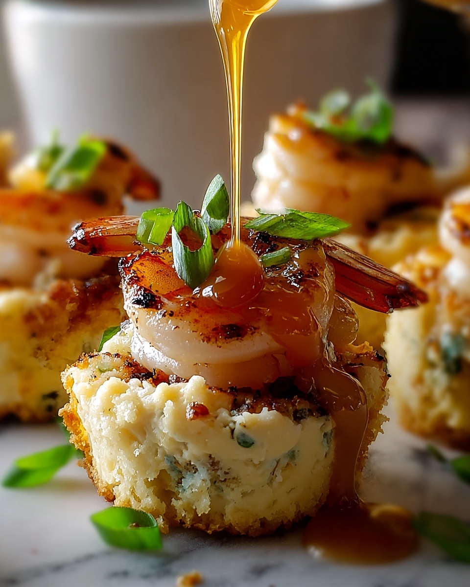 These Shrimp and Scallion Grit Cups with Creamy Cheese Center are a delightful appetizer featuring creamy stone-ground grits combined with sharp cheddar and cream cheese, baked to golden perfection, and topped with flavorful sautéed shrimp and scallions seasoned with smoked paprika. Perfect for entertaining or a sophisticated snack.