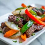 This Sizzling Pepper Steak with Onions is a quick and flavorful stir-fry dish featuring tender slices of beef cooked to perfection with sautéed bell peppers and onions, all enhanced by a savory soy sauce glaze. Perfect for a satisfying weeknight dinner in just 20 minutes.