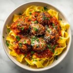 This Slow Cooker Meatballs recipe combines ground beef and Italian sausage with fresh herbs and Parmesan cheese to create flavorful, tender meatballs. Browned in olive oil for extra richness and then slow-cooked in a classic marinara sauce, these meatballs are perfect served over pasta or in sandwiches for a comforting, hearty meal.