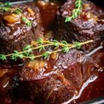 Once the ribs are tender, carefully remove them and strain the sauce if you prefer a smoother finish. Skim off any excess fat, then reduce the sauce on the stovetop over medium heat until it thickens slightly. This final step creates a luscious, glossy red wine sauce that’s simply irresistible.