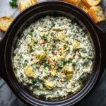 This Slow Cooker Spinach Artichoke Dip is a creamy, cheesy appetizer perfect for gatherings. Made with spinach, artichoke hearts, and a blend of cheeses, it’s warm and flavorful, ideal for serving with chips, baguette slices, or fresh vegetables. Easy to prepare and keep warm throughout your party.
