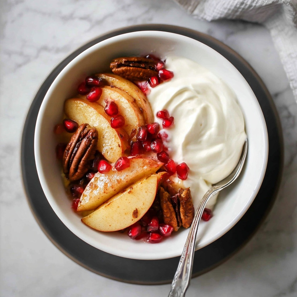 Some extra pomegranate seeds scattered on top add a jewel-like sparkle to the dish. A dash of freshly chopped mint or a light drizzle of honey can also enhance the flavors and presentation beautifully. If you’re indulging, a dollop of whipped cream or a scoop of vanilla ice cream balances the spices and warmth wonderfully.