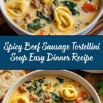 This Spicy Beef Sausage and Tortellini Soup is a hearty, flavorful meal that combines spicy beef sausage with fresh vegetables, tender tortellini, and a rich broth. Perfect for a cozy dinner, this soup is easy to prepare and packed with Italian-inspired flavors, featuring savory sausage, fresh spinach, and a hint of garlic and Italian seasoning.