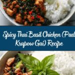 A flavorful and spicy Thai classic, Spicy Thai Basil Chicken (Pad Krapow Gai) combines tender chicken thighs with fiery chilies, aromatic garlic, and fragrant fresh basil leaves, all stir-fried to perfection and served over steaming hot rice. This quick and easy stir-fry dish is perfect for a weeknight dinner packed with bold flavors.