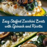 Delicious and nutritious Spinach, Mushroom, and Ricotta Stuffed Zucchini boats baked to perfection with a cheesy, flavorful filling, making a perfect vegetarian main or side dish.
