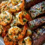 This Steak and Shrimp Scampi recipe combines perfectly seared steak with succulent shrimp cooked in a flavorful garlic butter sauce. Ideal for a luxurious, restaurant-quality meal at home, this dish features tender filet mignon or ribeye paired with a zesty lemon and white wine infused scampi sauce, garnished with fresh parsley and Parmesan cheese for an unforgettable dinner.