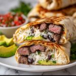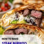 This steak burrito recipe features tender marinated flank steak cooked to perfection, wrapped in warm flour tortillas with a delicious combination of rice, black beans, cheese, pico de gallo, avocado, and optional creamy and fresh toppings. Perfectly seasoned with cumin, chili powder, and smoked paprika, this handheld meal is both satisfying and flavorful, ideal for a hearty lunch or dinner.