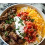 Steak Queso Rice is a flavorful and satisfying dish combining tender seasoned steak, creamy queso sauce, and bright cilantro-lime rice. This recipe offers a perfect balance of spice, creaminess, and fresh flavors, making it an ideal meal for both casual dinners and special occasions.