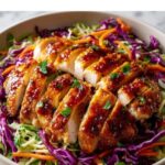 Reheat the chicken gently in a skillet over low heat to preserve its tenderness and to keep that sauce lovely and sticky. Avoid using a microwave if you want to keep the best texture. Serve the slaw cold or at room temperature for the best crunch and flavor.
