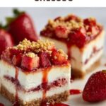 Delight in these Strawberry Crunch Cheesecake Chunks featuring a creamy baked cheesecake on a buttery graham cracker crust, topped with a crunchy golden Oreo and strawberry topping, finished with a luscious homemade strawberry sauce and white chocolate drizzle. Perfect bite-sized treats for any occasion, served chilled for a refreshing dessert experience.
