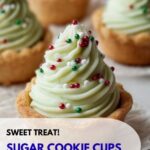 10. Decorate: Tint the frosting with food coloring if desired, then pipe or spoon the frosting into each cooled cookie cup. Top with sprinkles for a festive finish.