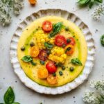 Adding fresh corn kernels back into the bowl offers a delightful burst of texture that contrasts beautifully with the creamy soup. Sliced heirloom tomatoes not only add pops of color but also contribute a sweet, slightly acidic bite. Fresh basil leaves lift the bowl with their aromatic herbal brightness, while a drizzle of basil oil creates a silky finish. A sprinkle of flaky sea salt ties everything together by enhancing all the flavors and adding a little crunch.