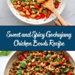This Sweet and Spicy Gochujang Chicken Bowls recipe offers a delightful combination of tender ground chicken cooked in a rich sauce made with gochujang, soy sauce, and a blend of aromatic ingredients. Enhanced with toasted sesame oil, fresh basil, crisp red bell peppers, and crunchy cashews, this flavorful dish is served over fluffy white or brown rice for a satisfying and balanced meal.