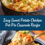 This Sweet Potato Chicken Pot Pie Casserole is a comforting and flavorful dish that combines tender cooked chicken, mixed vegetables, and a creamy sauce, all topped with a fluffy sweet potato layer. It’s an easy-to-make casserole that’s perfect for weeknight dinners or family gatherings.