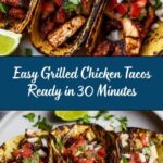This easy and flavorful grilled chicken tacos recipe features tender marinated chicken breasts grilled to perfection, served with warm tortillas and fresh toppings like salsa, guacamole, shredded lettuce, diced tomatoes, and cheese. Perfect for a quick and satisfying Mexican-inspired meal that serves 4.