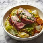 Celebrate St. Patrick’s Day with this classic Traditional Irish Corned Beef and Cabbage recipe. Tender and flavorful brisket is slow-simmered with aromatic pickling spices and garlic, then paired with hearty potatoes, sweet carrots, and crisp green cabbage for a comforting and iconic meal.