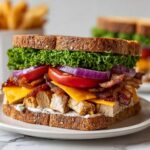 Try serving your Ultimate Loaded Chicken Club Sandwich Recipe on a wooden board with a side of coleslaw for a rustic feel. Alternatively, cut it into smaller finger sandwiches for a party platter that invites sharing and conversation.