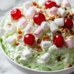 This classic Watergate Salad is a delightful, creamy dessert salad featuring instant pistachio pudding, crushed pineapple, Cool Whip, mini marshmallows, and crunchy walnuts, garnished with maraschino cherries. Perfectly chilled and easy to prepare, it serves as a refreshing side or dessert that combines fruity sweetness with a light, fluffy texture.