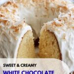 This Delicious White Chocolate Coconut Bundt Cake is a moist, flavorful dessert featuring the tropical richness of coconut milk and coconut emulsion, combined with smooth white chocolate and a tender crumb. Topped with toasted coconut, toffee bits, and a creamy coconut cream cheese buttercream frosting, this cake is perfect for special occasions or an indulgent treat.