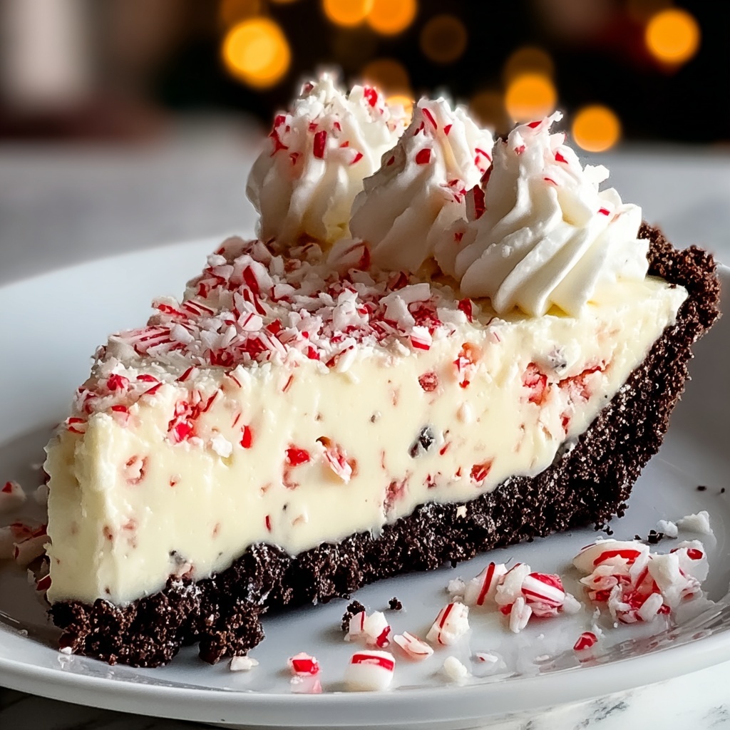 A sprinkle of crushed peppermint candies on top instantly makes this pie pop with color and texture, but don’t stop there. Fresh mint leaves, white chocolate curls, or even a drizzle of melted dark chocolate can add elegance and enhance the peppermint notes. Playing with garnishes allows you to personalize your serving and impress your guests visually as well as with taste.