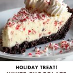 This White Chocolate Peppermint Pie is a festive and creamy dessert perfect for the holidays. Combining a crunchy Oreo cookie crust with a smooth white chocolate and peppermint-flavored filling, topped with whipped cream and crushed peppermint candies, it offers a delightful balance of sweetness and refreshing minty flavor. Easy to make and sure to impress, this pie requires minimal baking and a chill time to set.