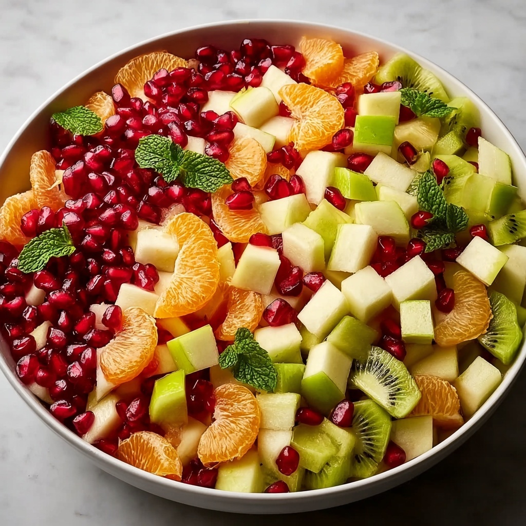 Start by gathering all your freshly prepared fruit in one big bowl. Gently toss together the diced apples, pomegranate seeds, pears, mandarin orange segments, and chopped kiwi. Mixing these fruits carefully ensures every spoonful has a little bit of everything, creating that perfect blend of textures and flavors.